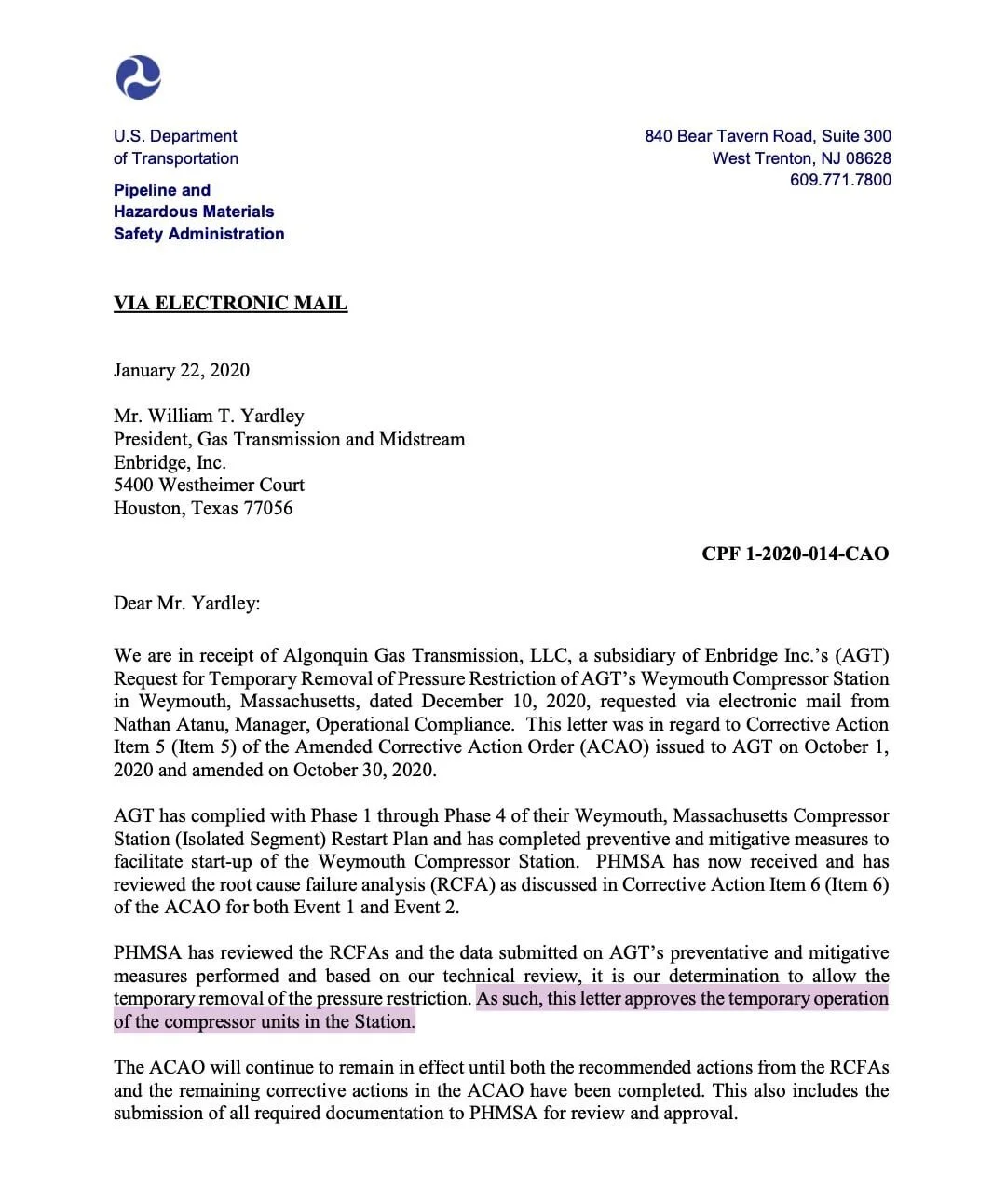 “The compressor station will methodically be placed in service beginning on January 23, in accordance with applicable regulations and with oversight from PHMSA [the federal Pipeline and Hazardous Materials Safety Administration],” Enbridge spokesman Max Bergeron said in a statement. “We expect to have the ability to start flowing gas through the compressor station for our customers in the coming days.”’ (WBUR)